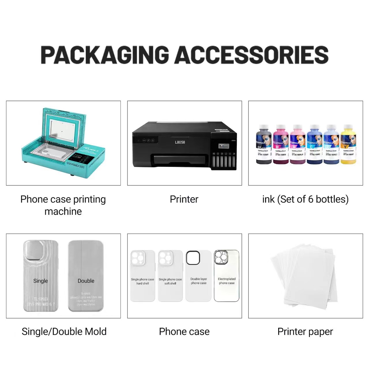 The Phone Case Printing Machine has a high level of accuracy, a silent print cycle, colorful fast printing, and one-click ink extraction. Put your own personal touch on your phone case. Let your creativity run wild by drawing food, pets, flowers, etc. and printing them out. There is a heat transfer phone case printing machine, printer, ink, blank 3D sublimation film, and a manual included in the package.